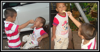yang ni sukaaaaaaaaaa sgt tgk kemesraan diorg ni... sbb dpt mkn aiskrim, bebaik la...kalo x bebaik..mama xkasi makan aiskrim... huahahaha... tp cm xsesuai jer nk jdkan header kan...?